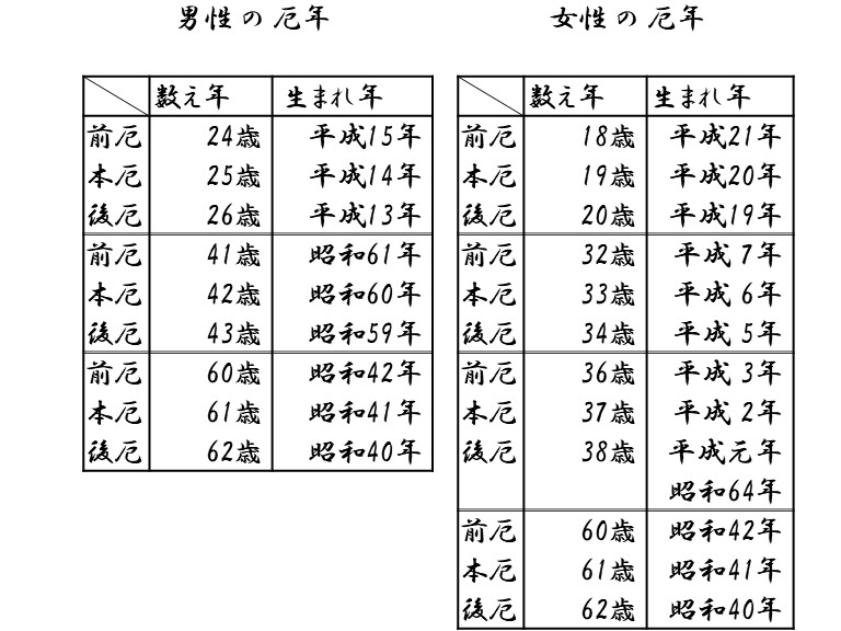 令和八年 厄年一覧